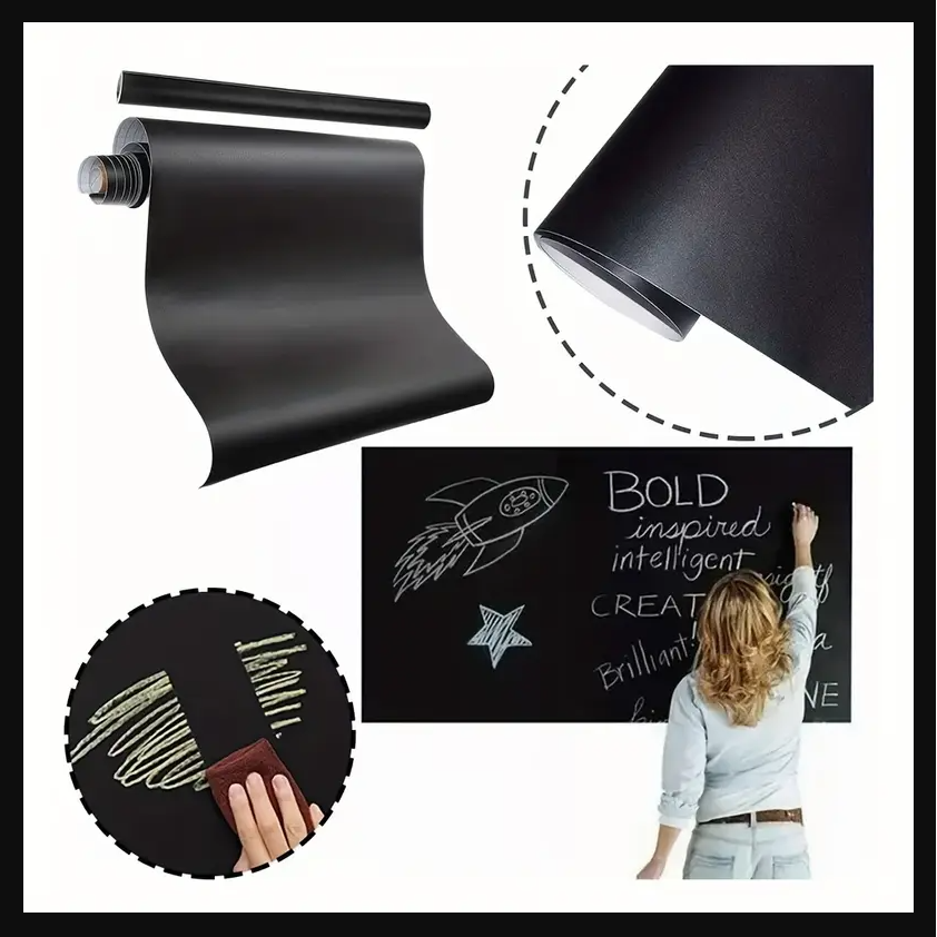 - Easily sticks to any flat surface and turn it into blackboard for notes, to-do lists and painting boards at home and office.