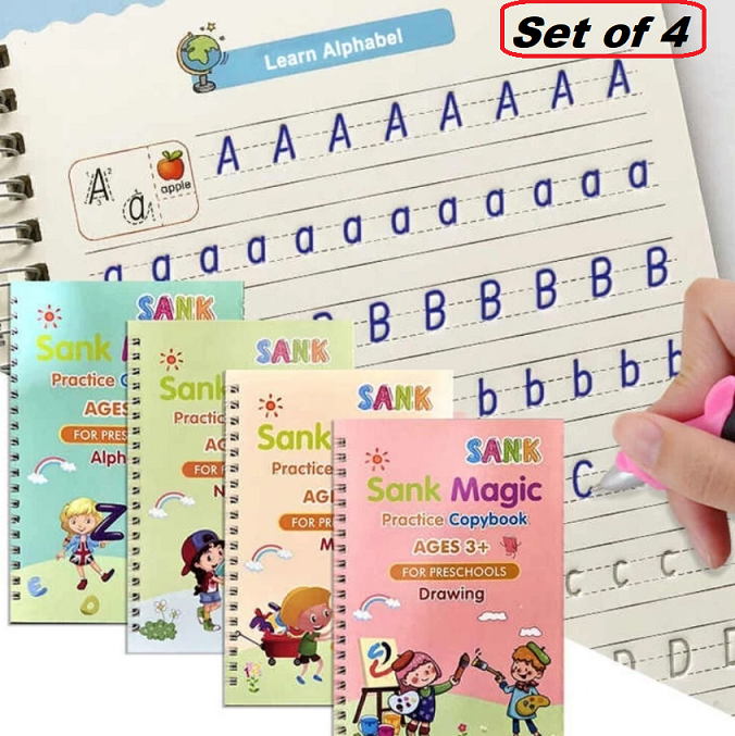 • Package Includes: Set of 4 Magic Books + 1 Magic Pen with 10 Refills + 1 Grip